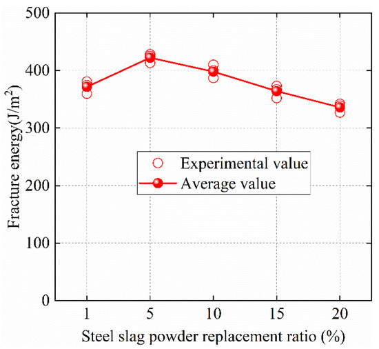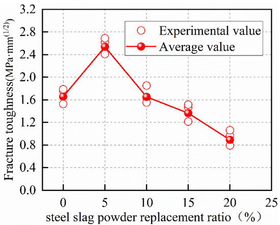 Fracture toughness of concrete at different steel-slag-powder replacement ratios.