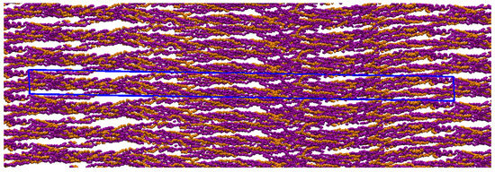 Figure 7 and Figure 8 show a devised Bone Fiber model, i.e., mCLGfs immersed in water and surrounded by HA inside the EFV. HA molecules from the INTERFACE force field (IFF) [49] database were used. Appendix E provides more detail about the used HA PDB file.