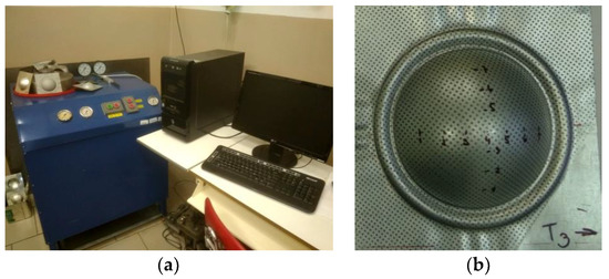 To compare the properties of the tested material under different stress and strain schemes, a bulge test was used in the experiment. The test was performed on equipment of our design. This device is shown in Figure 2.