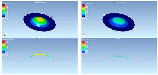 Comparison of predicted thinning values of samples T3 (left) and T6 (right) using software with explicit solver in program environment.