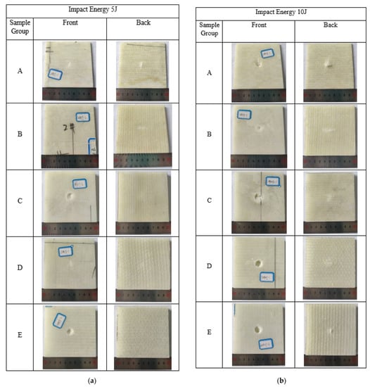 | Sample Group | Impact Energy (5 J) | Impact Energy (10 J) | Impact Energy (15 J) | |||