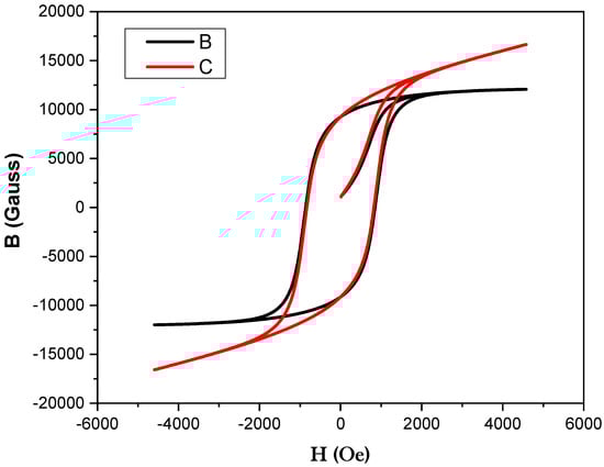 Magnetic hysteresis loop of Sample B and Sample C after complete treatment.