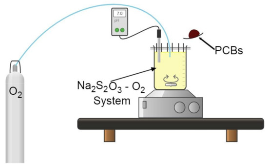 In this work, the authors propose the use of thiosulfate as leaching reagent to recover the copper contained in PCBs, as an hydrometallurgical alternative to leaching in an alkaline medium, due to its complexation capacity [43,44,45,46] and degree of stability in the compound formed, which is the copper thiosulfate [47]. Generally the formation of this compound is reported as a problem in the leaching of precious metals (Au and Ag) due to the consumption and degradation of thiosulfate that occurs, but in this case the authors have taken the advantage of this tendency to recover the copper present in these types of wastes. In addition, as the system is based in thiosulfate, oxygen has the fundamental feature of impacting the environment to a lesser degree compared to acid leaching, which is the most widely used process for the recovery of copper from oxidized minerals [17,48].
