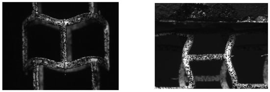The deformation of the stent due to the applied force was observed using a system of two cameras. Camera-recorded images of the compression of the stent on the corresponding axis were then analyzed in Dantec Dynamics Istra4D software. This program allows us to analyze interesting values of the whole element or its fragment visible on the camera. An example image of the stent model, with a special speckle pattern, from the camera as seen in Istra4D is shown in Figure 15.