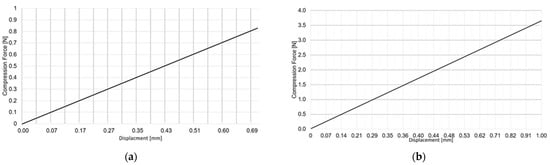 Force-displacement diagram for: (a) transverse and (b) longitudinal compression test.