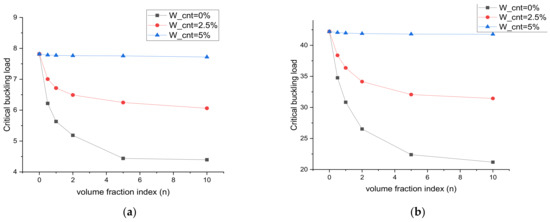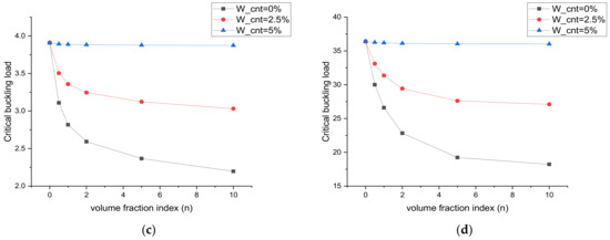 - By increasing the volume fraction index (n), the critical buckling is decreased due to less stiffness being obtained at a higher volume fraction index.