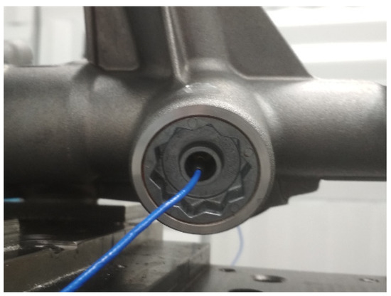 For general purposes, acceleration measurements were conducted at two points at the EPS housing and one point at the rack. However, the crucial measurement point was placed inside the CRB as a main point for model tuning and validation. Selection of that point was indicated by the preliminary simulations and testing. The point was located in the area of the most excessive and clear response generation and of the system. Moreover, the limitation of the CRB movement to one axis only excluded the influence of other possible signals not related to the NVH problem