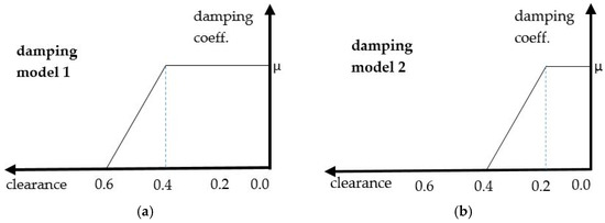 Contact damping models: (a) 0.6 mm total clearance; (b) 0.4 mm total clearance.
