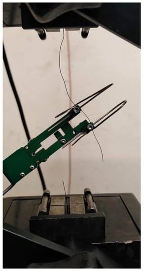 Table 2 shows the comparison of tensile strength and elastic modulus according to EN ISO 6892-1 [54]. The test, for both RTSFs and MSFs, was conducted on thirty wires approx. 30–40 cm in length. Figure 2 shows the measurements of the tensile strength and modulus of elasticity of wires from tyres. An extensometer was mounted on the wire. The wires obtained from the tyres received the demanded length and, due to the variety of diameters, were divided into two groups; 30 wires were tested in each group.