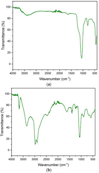The FT-IR spectrum presented for diatomaceous earth shows characteristic adsorption bands at 3436, 1625, 1094 and 797 cm−1 (Figure 6):