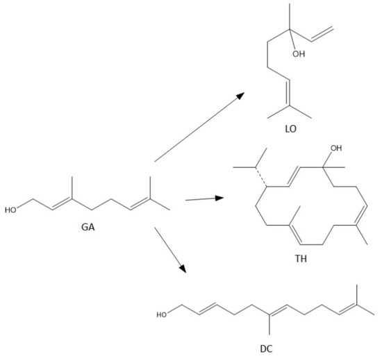 Haese et al. [33] presented studies on transformations of pure GA, and in mixture with nerol. The isomerization was carried out at 160 °C and at vacuum. As the catalyst oxodiperoxotungstic acid was used. The main product for pure Ga and Ga in mixture with nerol was linalool.