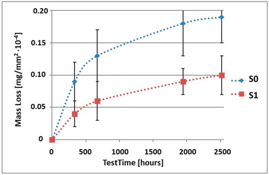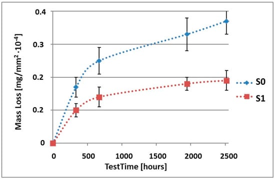 Comparison of the mass losses of samples S0 and S1 for tests in NSS environment.