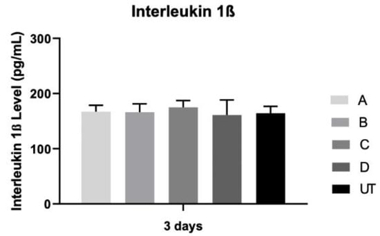 Figure 6 shows interleukin 1β production, and the results are comparable between the groups, with no statistically significant differences among all groups (p > 0.05).