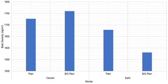 The following figure (Figure 4) presents the bulk density for the cement- and earth-based mortars (plain) with and without biostabiliser (bio).
