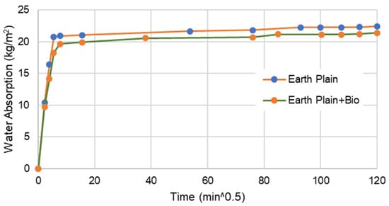 Water absorption for bio and non-bio earth mortar samples during the first 1 h.