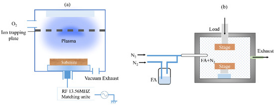 Schematic diagram of the process: (a) the plasma activation and the RIE equipment; (b) the bonding process under formic acid atmosphere. FA: formic acid.