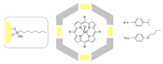 Schematic incorporation of two manganese porphyrins in SBA-15 modified with octyltriethoxysilane [69].