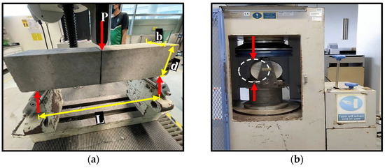 (a) Three-point loading flexural test. (b) Splitting tensile strength test.