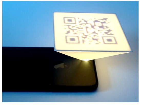 There are other studies using the same technology (FFF) and the same material (PLA) to embed the QR codes onto the surface of AM parts. In one of these studies, Gultekin et al. [7] proposed an automated approach to embed QR codes onto the interior surfaces of 3D-printed parts. This work mostly focuses on hiding the QR code into the AM part which can only be read by a light source as shown in Figure 3. If the error correction factor increases above 30%, then the readability of the QR code is affected. The QR code embedded can easily be scanned using mobile phones. Moreover, there was no post-processing carried out after the part was manufactured due to the capability of the FFF 3D printer. This approach has its own limitations, for example, it only involves making use of a single homogeneous material and scanning can only be carried out with a background light source. Additionally, it requires a thin layer below the place where the QR code is to be embedded. It should be noted that the de facto file forming AM is STL and it is not suitable for storing information into the surfaces of the AM parts. An approach of direct slicing can be used to overcome this issue. Unlike the previous works [2,5,6], where QR was embedded on the outer surfaces of the AM parts, this work focuses on embedding the QR code on the interior surfaces. The absence of mention of scanning angles in this work makes the reader assume that the QR code was scanned from the front. Despite the limitations, the work carried out by Gultekin et al. [7] paves a significant pathway in exploring the functionalities of the QR codes in the AM field.