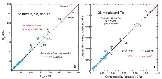 - Vaidya, S.N.; Kennedy, G.C. Compressibility of 22 elemental solids to 45 kbar. J. Phys. Chem. Solids 1972, 33, 1377–1389. [Google Scholar] [CrossRef]
