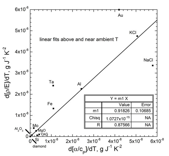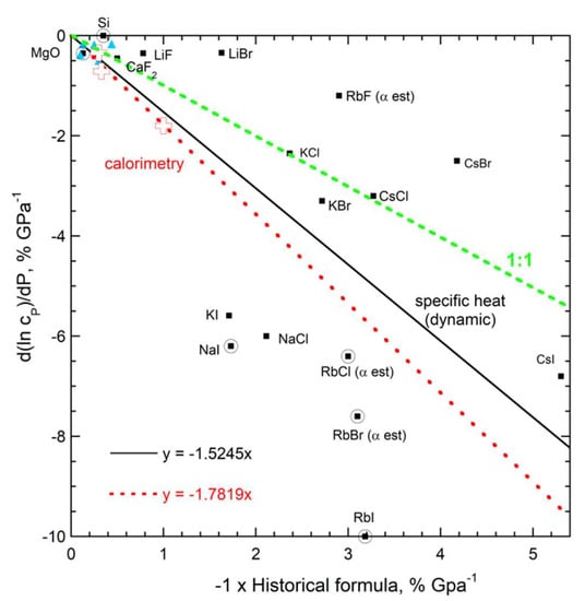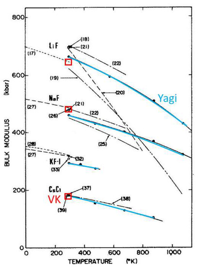 - Yagi, T. Experimental determination of thermal expansivity of several alkali halides at high pressures. J. Phys. Chem. Solids 1978, 39, 563–571. [Google Scholar] [CrossRef]