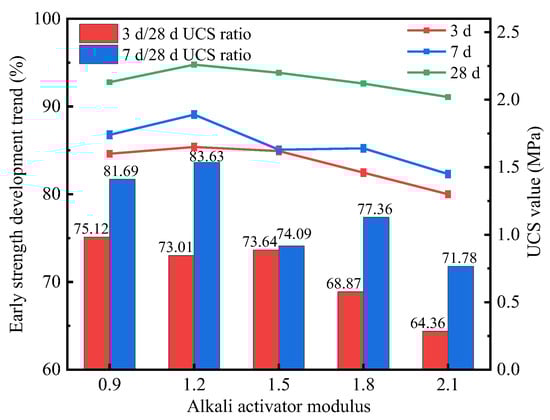 UCS values of stabilized soils with different alkali activator moduli.