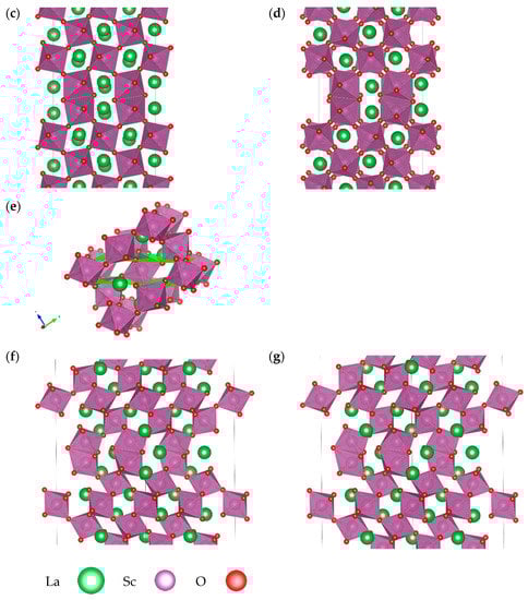 - Fisher, C.A.; Taguchi, A.; Ogawa, T.; Kuwabara, A. Structural phase transitions of LaScO3 from first principles. Mater. Today Commun. 2021, 26, 102048. [Google Scholar] [CrossRef]
