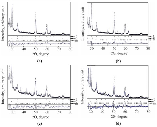 - Witz, G.; Shklover, V.; Steurer, W.; Bachegowda, S.; Bossmann, H.-P. Phase evolution in yttria-stabilized zirconia thermal barrier coatings studied by Rietveld refinement of X-ray powder diffraction patterns. J. Am. Ceram. Soc. 2007, 90, 2935–2940. [Google Scholar] [CrossRef]