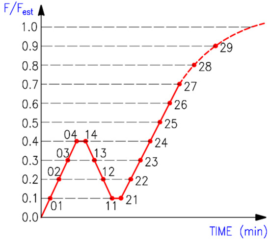 - Loading of the specimen to 40% of the estimated maximum force, 0.4·Fest, then holding for 30 s;