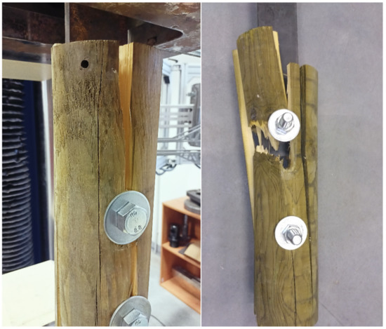- Lokaj, A.; Dobes, P.; Sucharda, O. Effects of Loaded End Distance and Moisture Content on the Behavior of Bolted Connections in Squared and Round Timber Subjected to Tension Parallel to the Grain. Materials 2020, 13, 5525. [Google Scholar] [CrossRef] [PubMed]