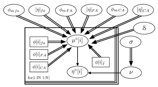 It is important to have good prior information, acquired using the experimental data or through expert consultation (i.e., scientific literature). It is very important to discern the quality of the information, especially if there is not enough data [47]. The Bayesian model to be created (its network) will consider the randomness of the dynamic viscosity mean value, and also the variability of the parameters. Proceeding this way, the parametric-deterministic model can be converted into a parametric-probabilistic model through the open-source software OpenBUGS [49]. This software incorporates a Bayesian inference program using the Markov Chain Monte Carlo method (MCMC) and the Gibbs Sampling methodology, a particular case of simulation algorithm of a Markov Chain. The software creates an acyclic graph with the hierarchical dependence structure of variables and parameters, and the posterior probability density functions of the parameters, together with the statistical values of the probabilistic model.