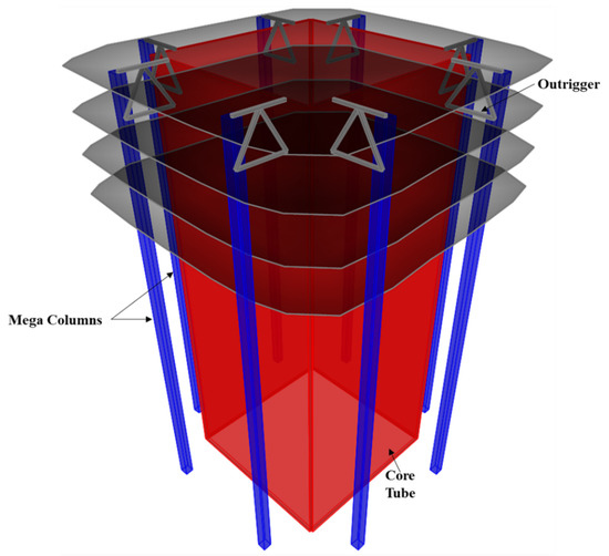 Although numerous CFST bond behavior studies have been conducted, most previous push-out tests have been conducted on small cross-sections [13] and may not represent CFST mega columns typically used in high-rise construction. Figure 1 shows a typical super-structure system incorporating mega columns, and the cross-section of mega columns typically exceeds 1 m. In this study, the bond stress behavior of 1.2- × 1.2-m mega CFST square columns was explored through push-out analysis using a validated finite-element model, and comparison with current practice codes was made.