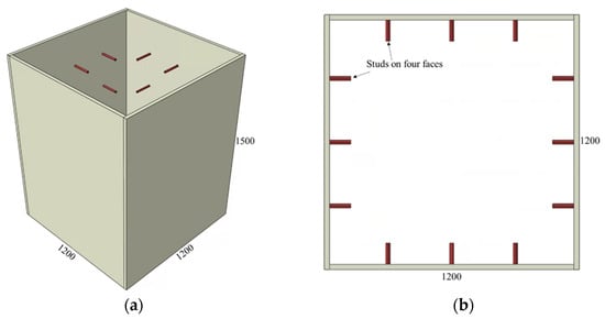 CFST column with shear studs on all faces: (a) 3D view and (b) top view.