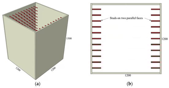 CFST column with shear studs on two parallel faces: (a) 3D view and (b) top view.