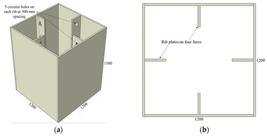 CFST column with rib plate connectors: (a) 3D view and (b) top view.