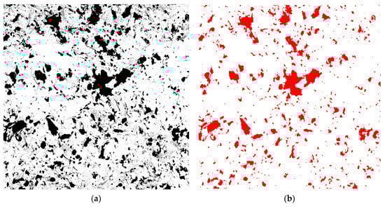 Binarization of microscopic image: (a) initial image and (b) image after binarization (for calculations).