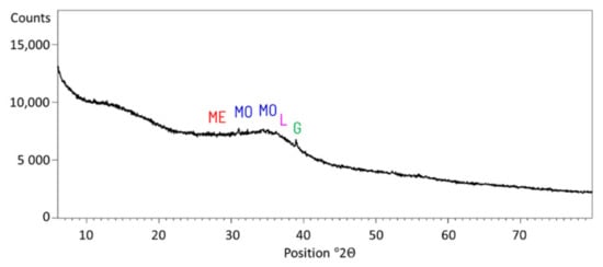 XRD analysis of GGBFS. ME—Merwinite; MO—Monticellite; L—Larnite; G—Gelhenite.