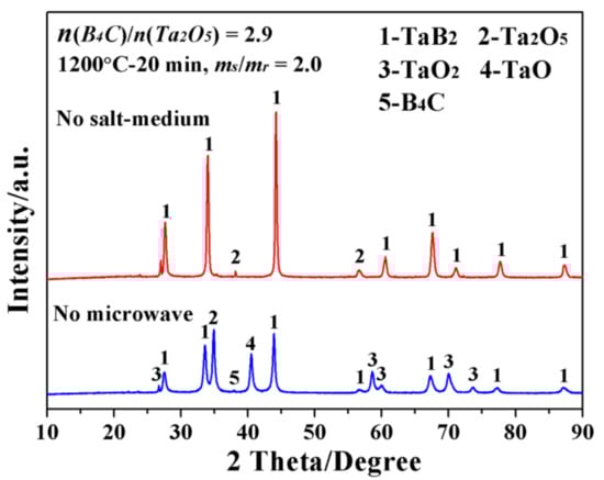 - Shah, L.A. Low-temperature molten salt synthesis and characterization of nanowire-like TaB2 powder. JOM 2021, 73, 1023–1029. [Google Scholar] [CrossRef]