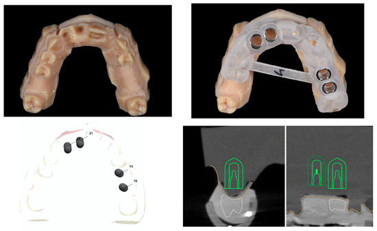 - Mora, M.A.; Chenin, D.L.; Arce, R.M. Software tools and surgical guides in dental-implant-guided surgery. Dent. Clin. N. Am. 2014, 58, 597–626. [Google Scholar] [CrossRef] [PubMed]