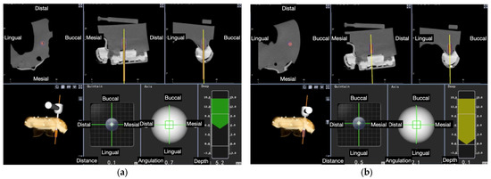 - Lateral deviation (mm): a 2D difference in mesial/distal (y-axis) and buccal/lingual (x-axis) placement of the implant (disregarding depth deviation).