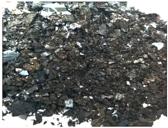 Asphaltene extracted from the thermally treated COTBS shows a higher carbon content compared to the asphaltene extracted from the untreated COTBS. It is believed that heating the COTBS before asphaltene precipitation helps to remove moisture, thus reducing the number of hydrogens in the extracted asphaltene samples. Contents of nitrogen and sulfur also increased from the effect of thermal treatment of the COTBS. During thermal treatment, nitrogen was released from pyridine and indole composition, whereas sulfur was released from hydrogen sulfide bonding and sulfur oxide compounds originating from the COTBS. Nitrogen and sulfur in the asphaltene might present as surface functional groups at the edges of the asphaltene structure and this will influence the functionality of the asphaltene [20,21]. Asphaltene extracted in our study is black and shiny in appearance as shown in Figure 1.