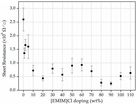 Sheet resistance of the asphaltene thin films as a function of [EMIM]Cl concentrations.