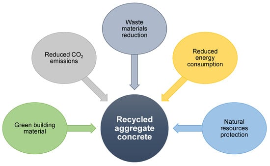 Benefits related to the adoption and application of recycled aggregate concrete.