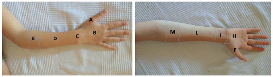 General comfort was assessed as follows: pain during treatment assessed by location (Figure 5) and intensity as measured with the Visual Analogue Scale (VAS) [18]; the presence of skin lesions according to NPUAP/EPUAP classification [19]; overall wellbeing according to the Italian adaptation [20] of Positive affect (PA)-Negative affect (NA) Scale for Children (PANAS-C) [21] and the Self-Assessment Manikin (SAM) [20] clinical psychology tests. Representative mean scores were extracted from available normative values [20].