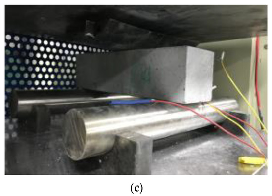 Figure 5. (a) Compressive, (b) splitting tensile capacity, and (c) flexural tests.