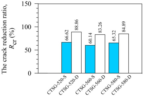 - The crack pattern of the CTS specimen is a single tensile crack, whereas the crack pattern of the CTSG specimen is a double crack, including a shear crack and tensile crack. The single and double reinforcements significantly reduced the surface cracks by an amount ranging from 60% to 88%. The geogrid strength had a negligible impact on the crack reduction.