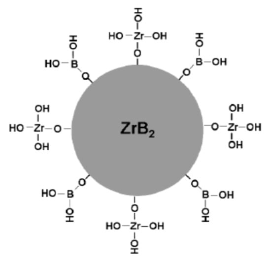 - Yin, J.; Zhang, H.; Yan, Y.; Huang, Z.; Liu, X.; Yang, Y.; Jiang, D. Hydrolysis behavior of zirconium diboride during attrition milling. Mater. Chem. Phys. 2012, 133, 8–15. [Google Scholar] [CrossRef]