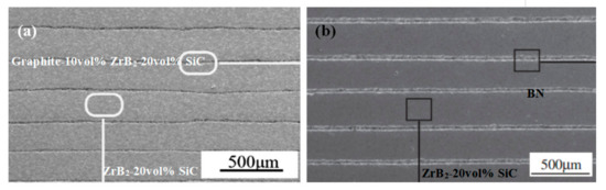 - Li, Y.; Li, Q.; Wang, Z.; Huang, S.; Cheng, X. Fabrication of laminated ZrB2-SiC ceramics via tape casting and vacuum hot-pressing sintering and their mechanical properties. Ceram. Int. 2015, 41, 11555–11561. [Google Scholar] [CrossRef]