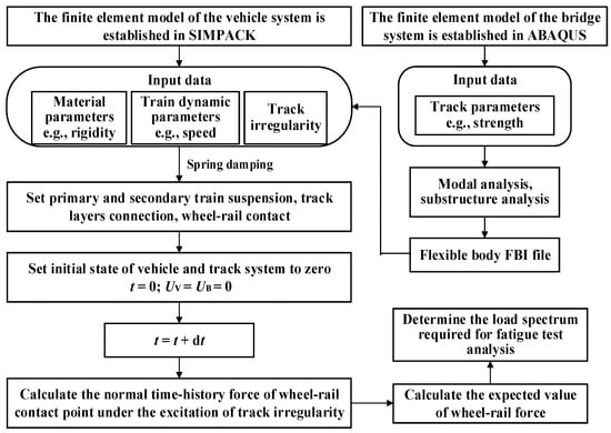- The finite element model of the bridge was established in the finite element analysis software; the vehicle system dynamics model was established in SIMPACK [33].