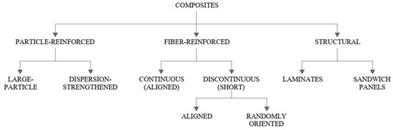 Composite materials are divided into particle-reinforced, fibre-reinforced and structural composites. Fibre cement boards are classified as fibre-reinforced composites, and the phases are dispersed in each direction. The classification of composites is shown in Figure 1.